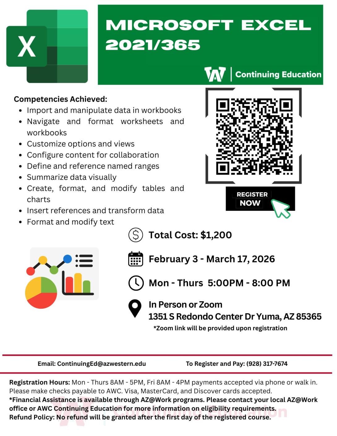 If you have questions or need help with tuition assistance, AWC Continuing Education partners with AZ @ Work to provide certification programs and career-building courses to the Yuma and La Paz communities.