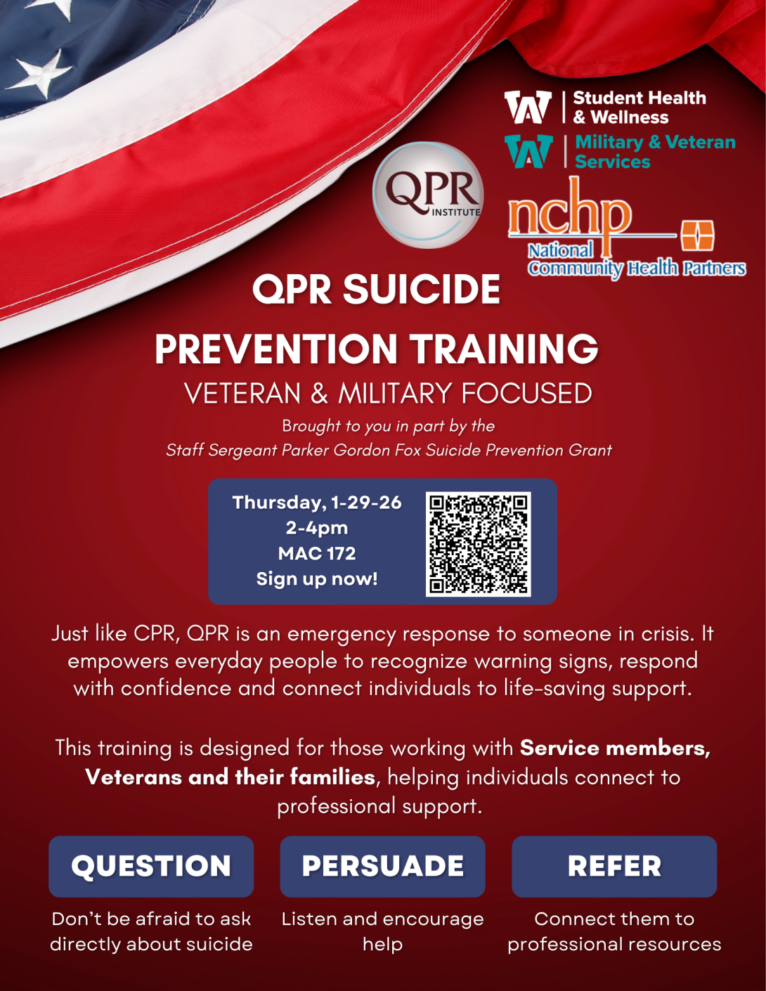 Just like CPR, QPR (Question, Persuade, Refer) is an emergency response to someone in crisis. It empowers everyday people to recognize warning signs, respond with confidence and connect individuals to life-saving support.