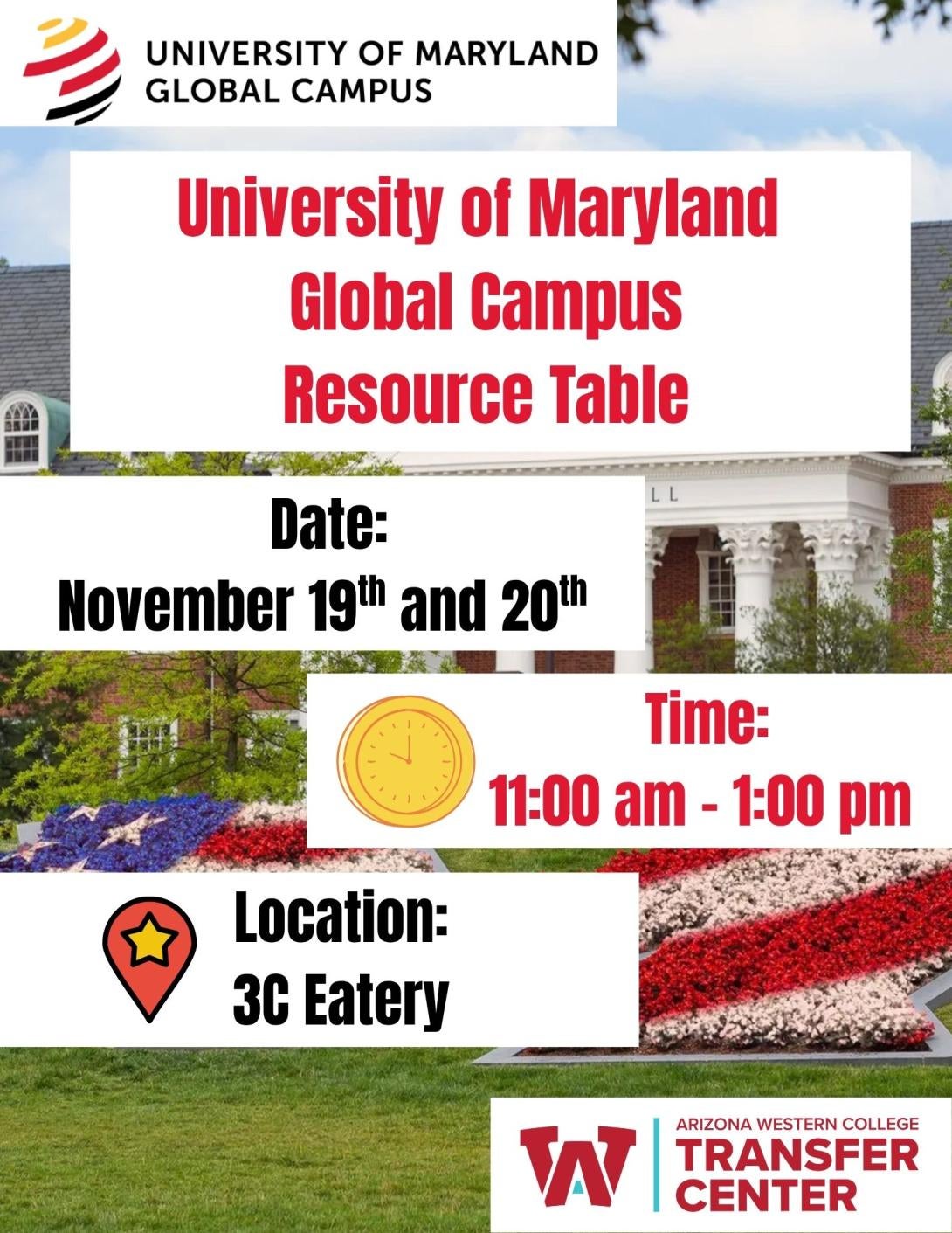 Join the University of Maryland Global Campus (UMGC) Resource Table to learn more about your transfer options.